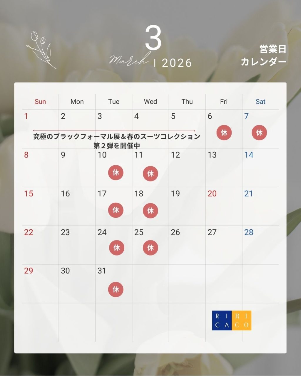 RicaRico 店長ブログ2026.02.27突然の日に、心を整える装い