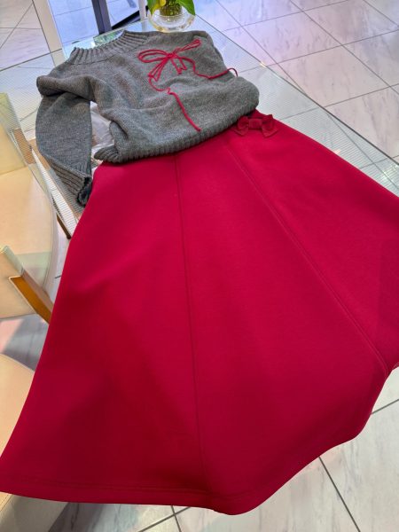 ・柄の中に赤が入ったトップスやワンピースを選ぶ