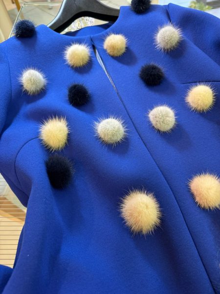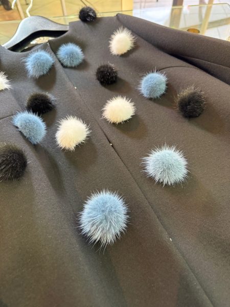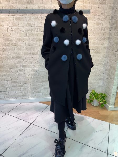 “ミンクのぼんぼり”がポイントのコート。