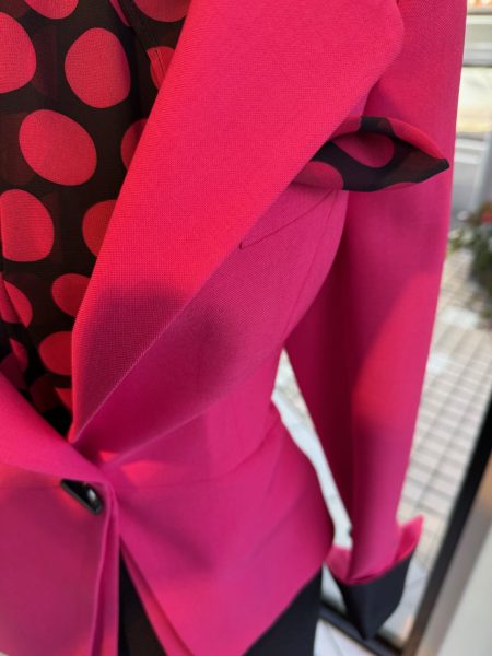 鮮やかなピンクのジャケット。