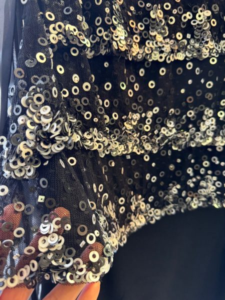 スパンコールのドレスでした。