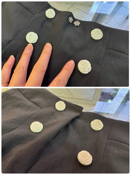 4つの白いバラボタンがさりげないアクセント。